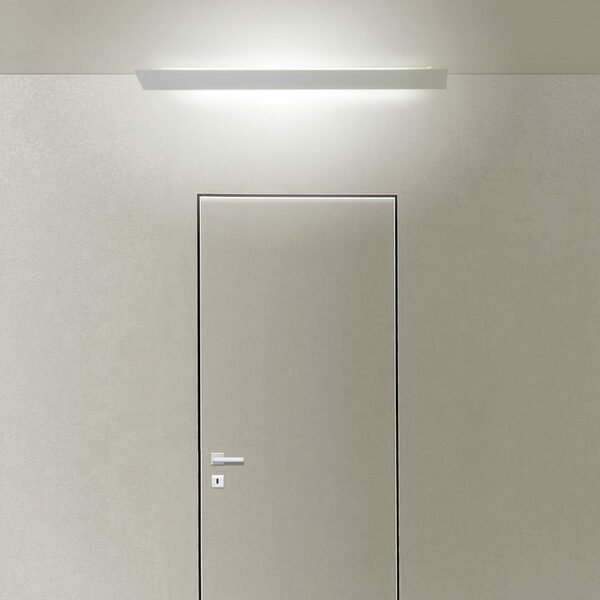 Wall lighting fixture developed to install the lamp in corners to obtain an indirect, diffuse lighting effect on the adjacent walls.