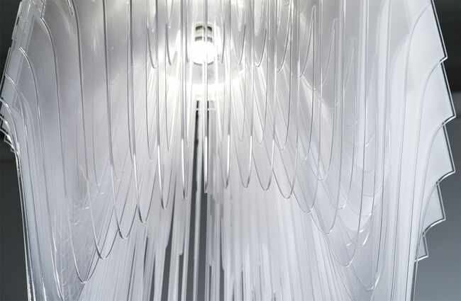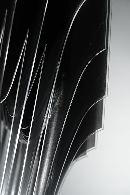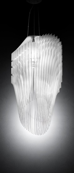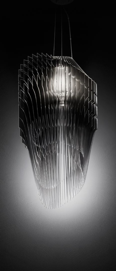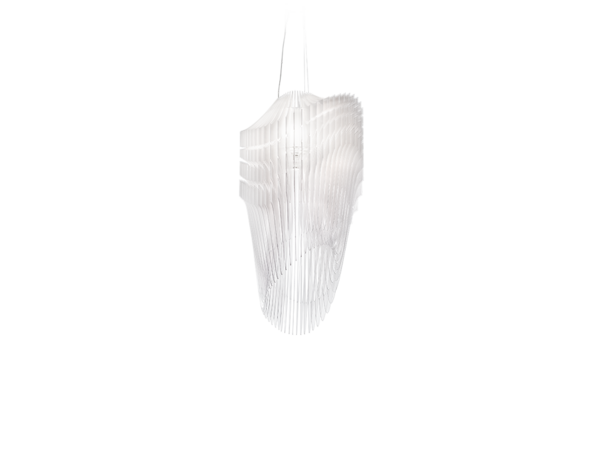 Zaha Hadid’s visionary, fluid, and dynamic luminous architectural objects bring the designer’s revolutionary and iconic semantics to any domestic or public space, inspiring harmony between beings and atmospheres. Avia brings the grandeur of large-scale buildings to a quotidian lamp, integrating technical, voluminous forms with innovative lighting technology. Fifty diverse, Cristalflex® layers surround the central light source in perfect construction, transforming light into sculpture.