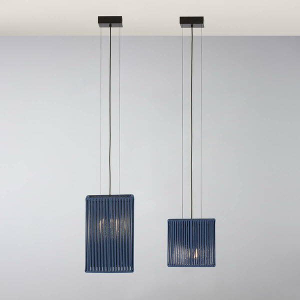 Our Ole! design team has always a room for the straight cubical designs. Cubes are a never-ending fashion with any design concept. Surface fittings with metal framework, hand made textile cord lampshades made from recycled plastic bottles and matt opal acrylic diffuser.