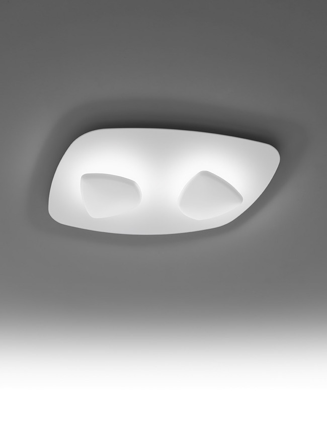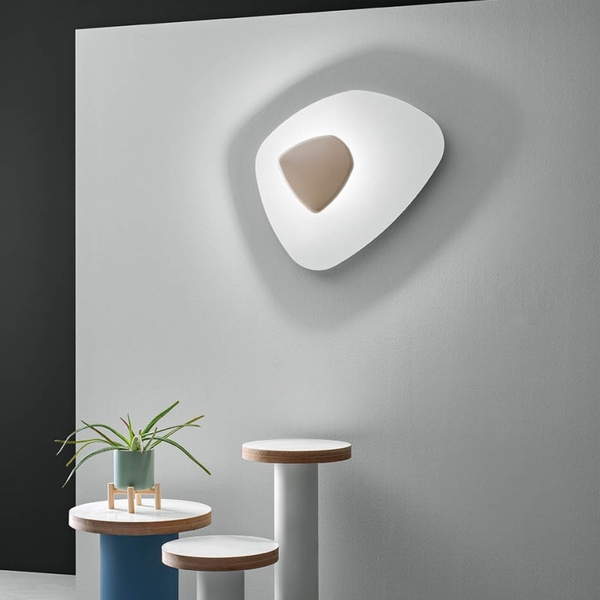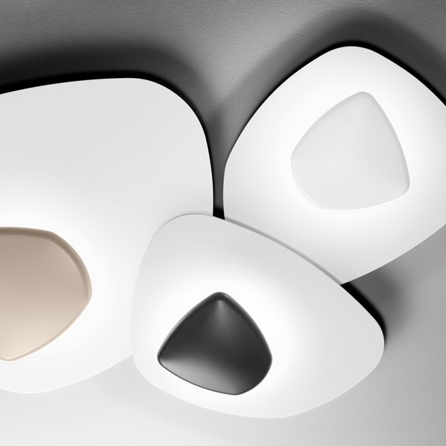 Lamp with aluminium structure and methacrylate diffuser. Available in matt white, matt black and dove grey. Dimmable LED light source. Indirect illumination.