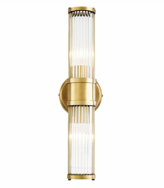 Create a warm glow in your hallway, lounge or bedroom with the Claridges Double Wall Lamp. This alluring Art Deco inspired wall lamp features an antique brass finish and two lamp shades of translucent alabaster for perfect ambient lighting.