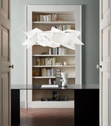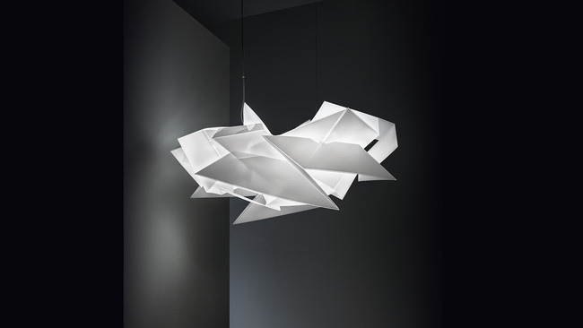 The unique, avant-garde lamp is an asymmetrical series of fragments, seemingly dis-articulated, that stray far from traditional aesthetics; the lamp was inspired by the eponymous Spanish city, where architecture and light make for a mystical atmosphere. Flat sheets of our techno-polymer material take shape using an algorithm that diffuses the light throughout a seemingly endless structure. Cordoba is handcrafted, and offers varying points of view even when seen in its whole.