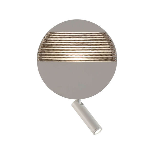 Simple wall lamp with circular shape that combines metal and cord. With DIAL we bathe walls creating an ambient atmosphere and, in its version with spotlight, we find a reading support.