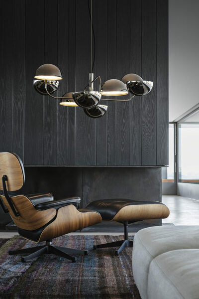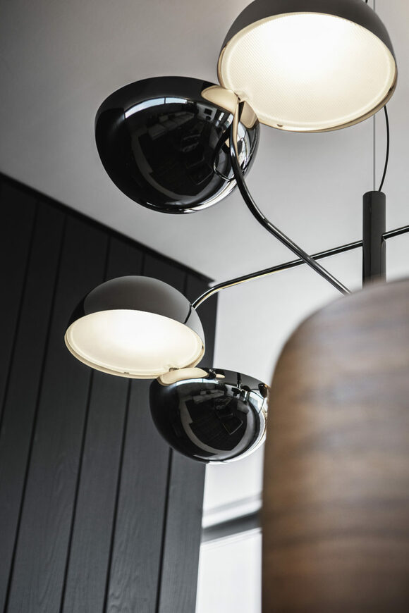 Elisabeth collection is inspired by an astronomical game of hemispheres: from the linear version of the table lamp to the suspension lamp, reminiscent of art deco. The formal cleanliness of the volumes is enriched by glossy metal and Carrara marble.