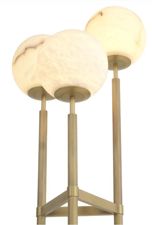 The graphic antique brass finish framework of Floor Lamp Fiori sets off its gorgeous alabaster globe shades and delivers cosy ambient lighting. Make sure to do its beautiful Art Deco design justice by placing it in a prime visible location in your living room, bedroom or home office.