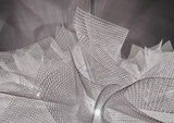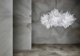The Fluo lamp designed by Arturo Álvarez is part of a collection of pendant luminaires created from veils of painted galvanized steel mesh that are gracefully joined around a single point of light. The union of several pieces form a spectacular composition of large dimensions. Fluo Compo grande is a light form that reproduces the illusion of a vaporous fabric, like a semi-transparent tulle that reveals and conceals at the same time, playing with the intuition of the observer. The lightness of this handmade design, which won a Good Design Award in 2009, is enhanced in the larger compositions of the collection.