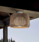 FORA is an outdoors lamp with IP-55. The cast iron base is distinguished by a radial base whose tubular desing improves durability and allows light to reach the grass. Light source is protected by an elliptical medium intensity and U.V. protection polythene globe, which guarantees a water tight electrical fixture. The shade is made of synthetic wicker, making it highly resistant to weathering while casting a pleasant, diffuse light. The result is a luminaire that adapts well to all types of indoor and outdoor environments. Its versatility is remarkable and difficult to find in products of this category. This family consists of a table lamp, floor lamp, ceiling, pendant retail and pendant big format.