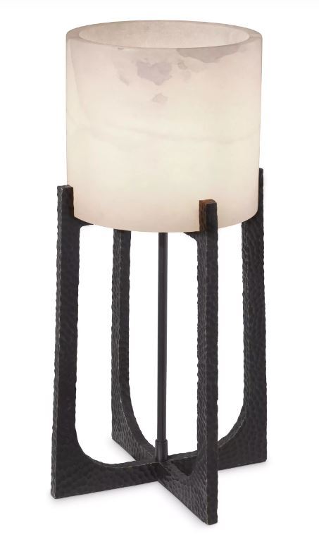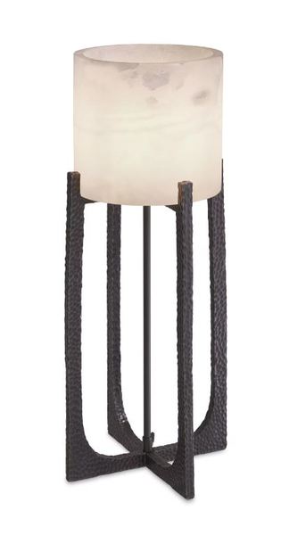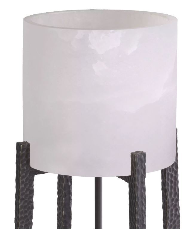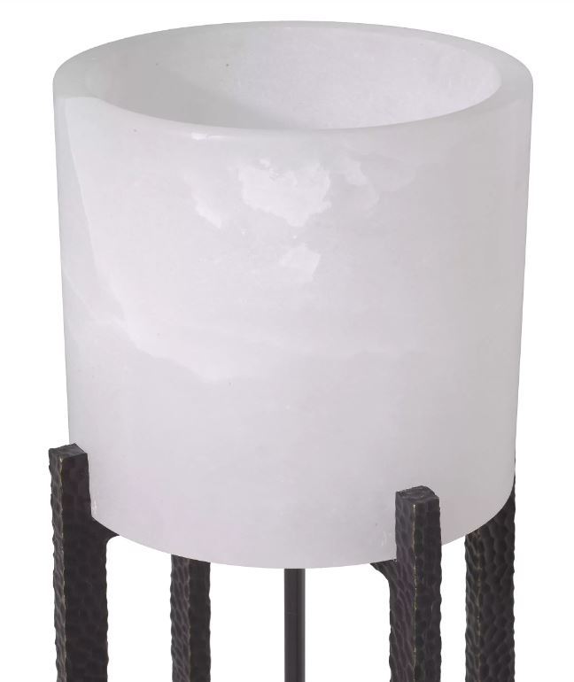 Packed with Mid-Century Modern style, Table Lamp Fraser L stands out by a hammered frame with a bronze highlight finish. Unobtrusive but elegant, the frame offers reliable steadiness to the lovely lampshade that is carved from a solid piece of translucent alabaster. Pair with Table Lamp Fraser S for extra dimension.