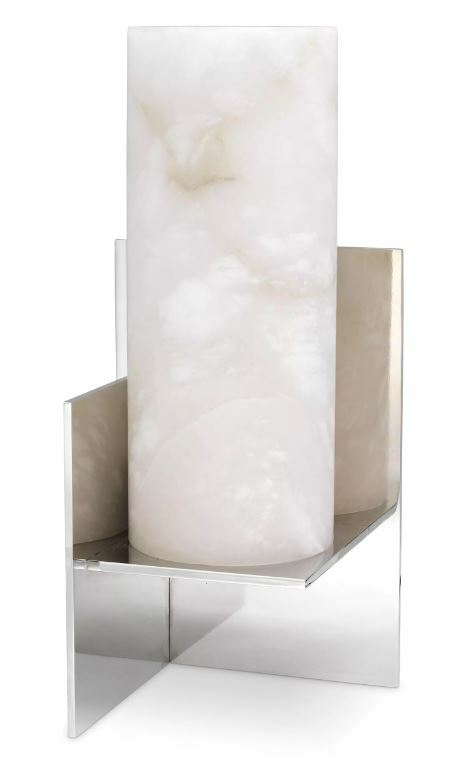 Handcrafted by skilled artisans, Table Lamp Frisco stands out for its geometric design. Bring contemporary elegance to your home with this eye-catching table lamp, featuring a nickel finish base and a tubular shade of alabaster.