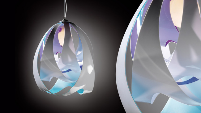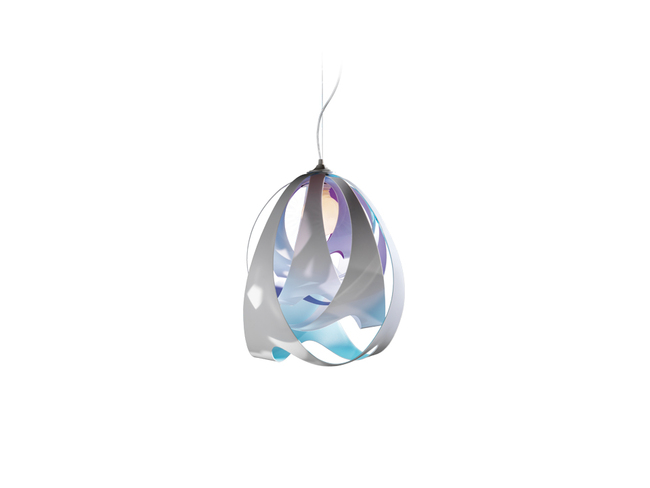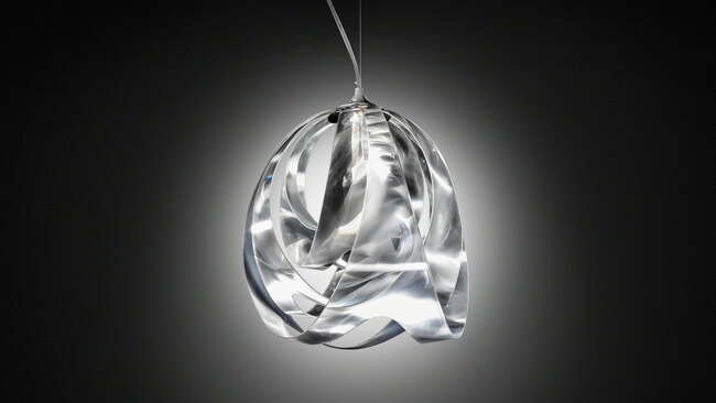 The weightless, fluid form of liquid has been captured in this luminous body, and Goccia’s unique design plays hide and seek with the central light source. Both the Prisma Lentiflex®  and coloured versions have extraordinary, varying effects and reflections. Fluid yet compact, soft and shining, the lamp adds energy to domestic spaces and when grouped together in large areas, sinuous refinement.