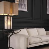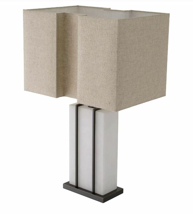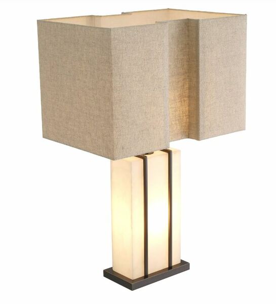 Bring contemporary elegance to your home with Table Lamp Graham. It features an alabaster body in a bronze highlight finish frame and is supplied with a linen mix shade thas has coves on both sides. The translucent alabaster body also contains a lamp socket and creates a really warm ambient light.