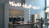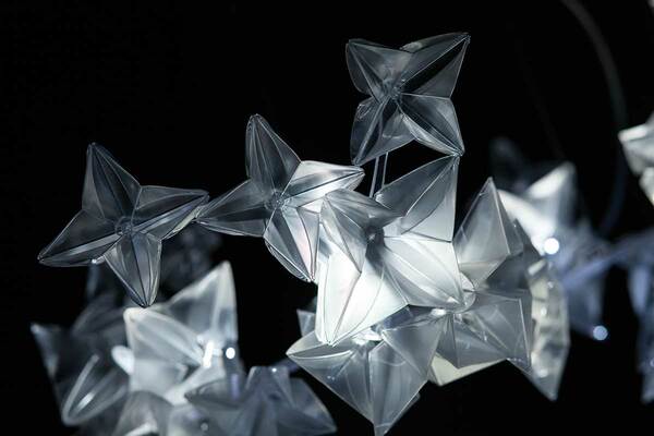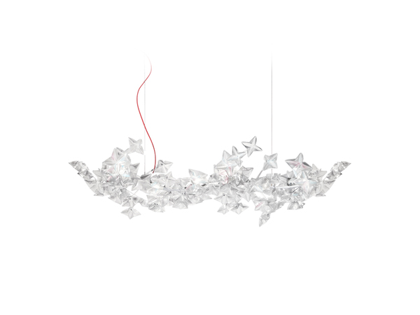 Hanami’s unique, delicately coloured refractions are distributed throughout hand-folded flowers made of Lentiflex®, a luxurious material that recreates diamond-like reflections, each mounted on a painted steel and polycarbonate frame with fixed dimmable G9 LED bulbs.