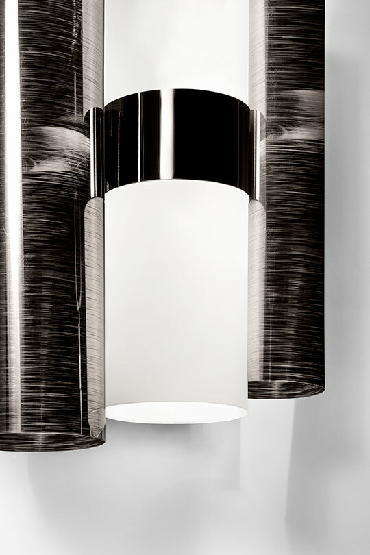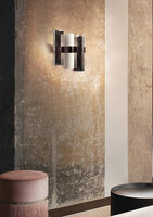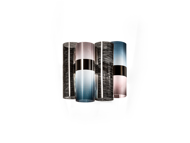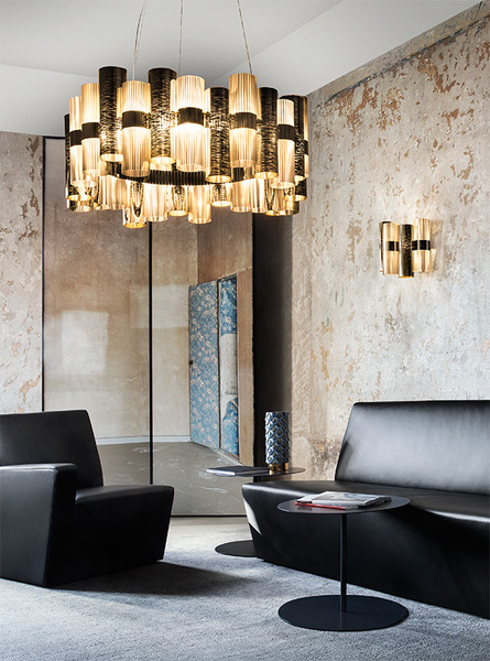 La Lollo is a tribute to the roaring 50’s; the wall lamp is available in 5 finishes, with sophisticated gradient chromatics, metallization, lace patterns and geometric designs that adorn varying spaces with the same versatility as jewelry on a woman’s body. Slamp’s unique, exclusive technopolymers shine like glass, but are unbreakable, and the wall lamp has two light sources (in both cool and warm versions, depending on the selected bulb). A single lamp is ample enough for domestic illumination, and when multiplied, perfect for larger hospitality projects. La Lollo Applique is part of a collection that includes suspensions of various sizes.