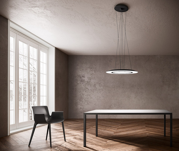 Extremely slight suspension lamp, suitable for domestic and professional environments.