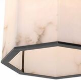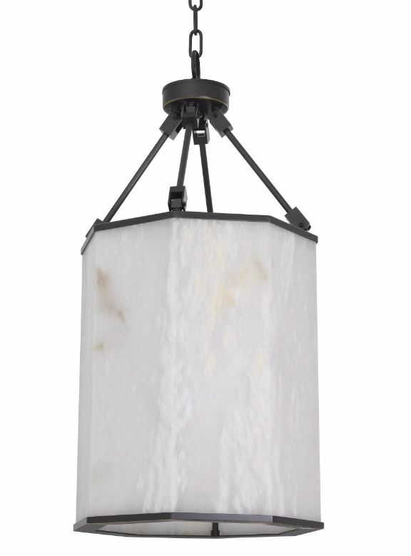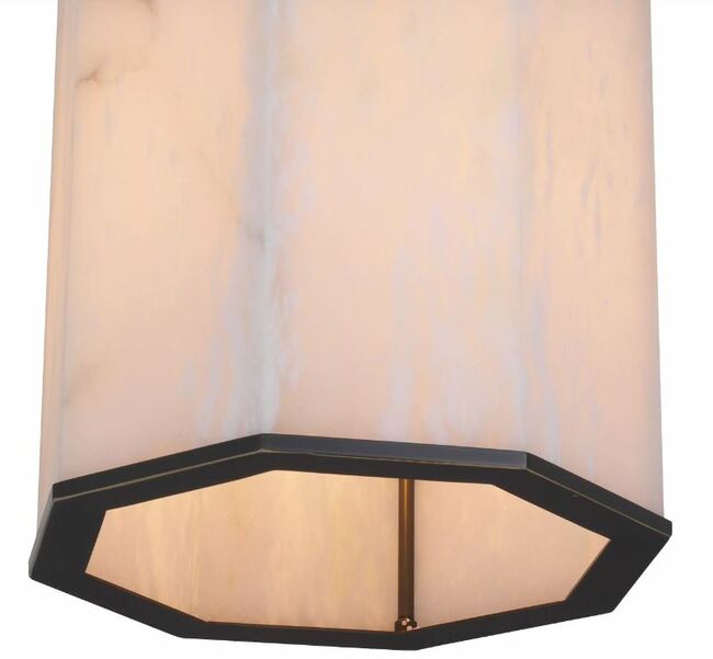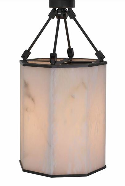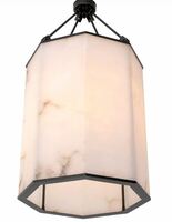 The bronze finish Lantern Victoire is a striking octagonal shaped lantern style ceiling pendant. Provided with panels of precision cut alabaster, this semi-flush mount light creates an even, mellow illumination. The use of this translucent material makes each piece unique. Also available in a smaller size.