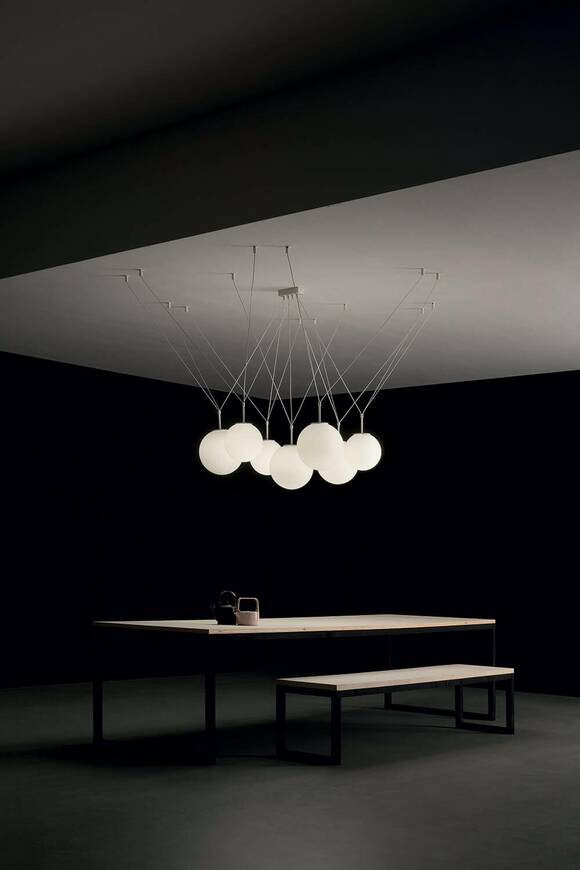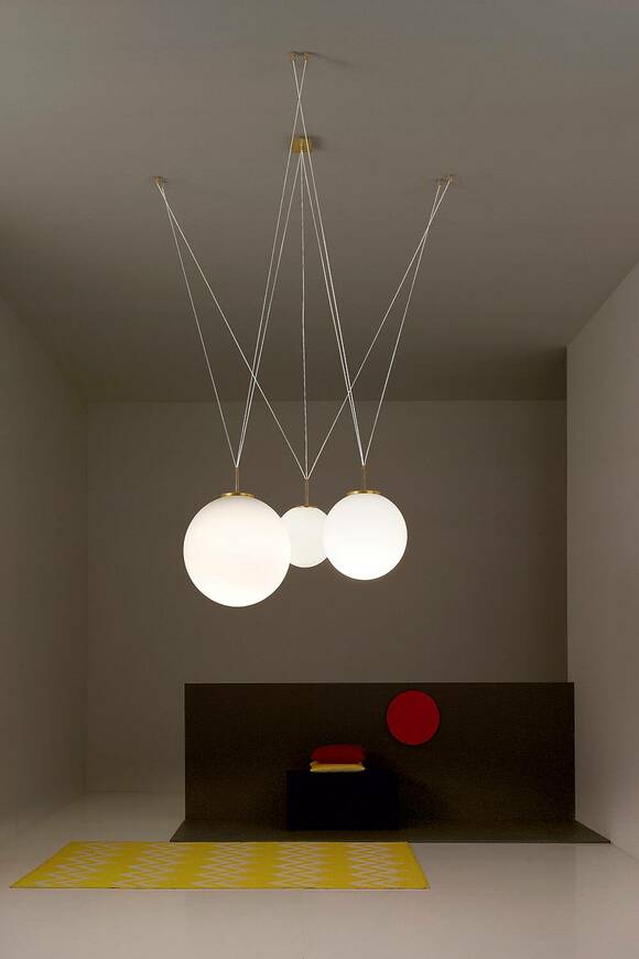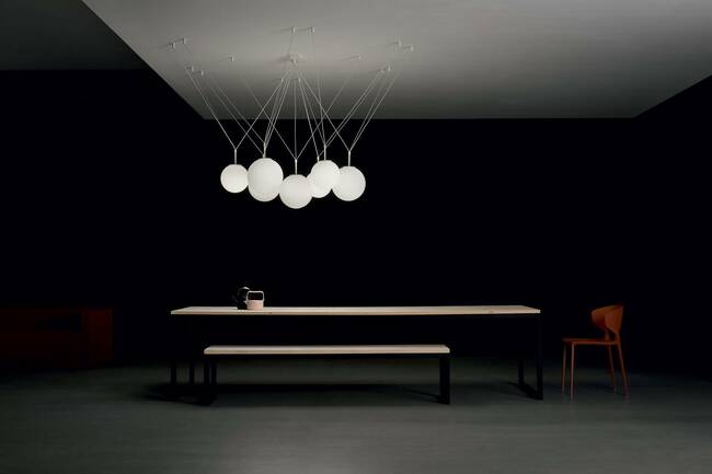 Τhis is pallatre, a suspension lamp in blown glass triplex that expresses the perfect balance of modern elements.