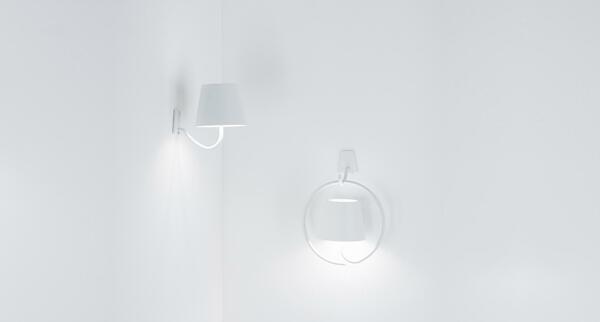 Poldina wall lamp is a battery-operated portable and rechargeable lamp, available in two versions, and equipped with dimmer touch control.