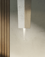 SOP is a suspension lamp. The shape, which recalls the elegance of the vases and vials of the Greek and Roman period, is hexagonal. SOP is a unique and tapered block of cement, that is completed at the base by an LED which is reminiscent of the shape and elegance of a flower’s pistil. The use of cement, an extremely contemporary material, allows SOP to combine perfectly with the environment and the context in which it is inserted. The lamp is a very discrete element in its monochromatic form, when coloured it gives a strong contrast.