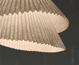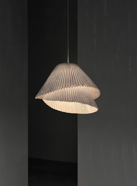 Tempo Andante is a pendant lamp from the collection with the same name designed by Arturo Álvarez. Made of painted stainless steel mesh, it is handmade in Spain. This material, crafted in fine pleats, forms two overlapped layers that create two different lamps full of dynamism. Andante and Vivace, two liveliness shapes born from one. The representation of two instants generated by the same movement at a different tempo.