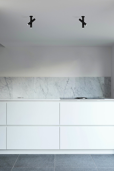 In the ceiling version the ceiling element rotates 340 °, while the other cylinder can be rotated by 90 °.