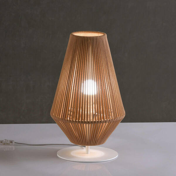 Collection of sustainable lamps of ethnic design that with its cords gives life and chromatism to the most demanding and innovative spaces. The cords, made from recycled plastic bottles and hand-braided in a metallic structure, sift the light creating singular effects.