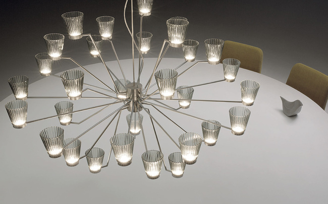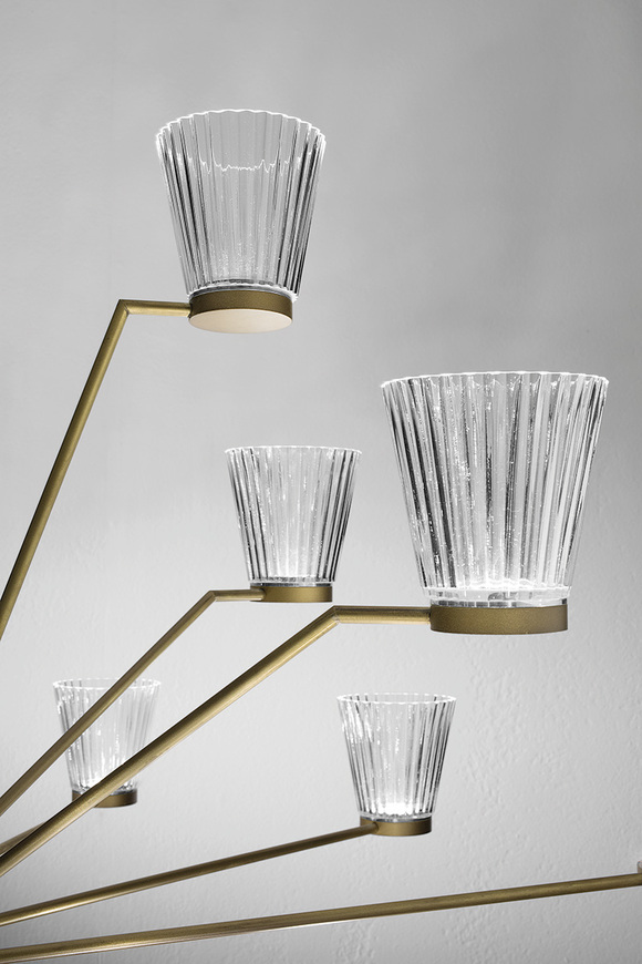 Συλλογή φωτιστικών τοίχου με μεταλική δομή και Murano ανακλαστήρα από φυσητό γυαλί. Έμμεσο φωτισμό με LED 220V. Δε χρειάζεται τροφοδοσία. Διαθέσιμο σε 3000°K και 2700°K LED θερμοκρασία χρώματος