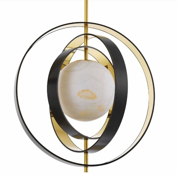 Με την ουράνια γοητεία του, το Chandelier Pearl αποτελεί ένα λαμπερό εστιακό σημείο στο εσωτερικό του σπιτιού σας. Η μαργαριταρένια απόχρωση του από αλάβαστρο περιβάλλεται από τέσσερις μεταλλικούς δακτυλίους που είναι μπρονζέ από έξω και χρυσό φινίρισμα στο εσωτερικό. Οι δακτύλιοι μπορούν να περιστραφούν μεμονωμένα.