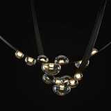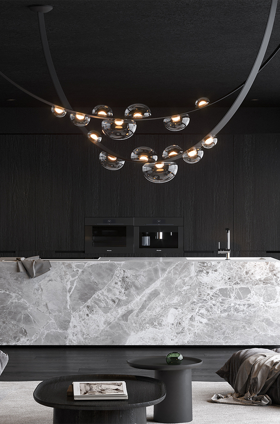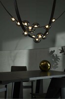 To Dew Drops αστράφτει σε μια λεπτή λεπίδα που αποκαλύπτει τη στοιχειώδη ομορφιά της φύσης που συνεχίζει να μας συναρπάζει. Το οικείο, αλλά γοητευτικό σχήμα των σταγόνων δροσιάς ενέπνευσε αυτή τη συλλογή με τις ακριβείς λεπτομέρειες. Φωτίζεται από μια εσωτερική πηγή φωτός που προσφέρει μια εξαιρετική αισθητική εμπειρία, τα κρυστάλλινα αντικείμενα, με νότες ιριδισμού, προσκολλώνται σφιχτά σε ραμμένες στο χέρι ταινίες από ένα καινοτόμο υλικό. Η Συλλογή Dew Drops της BOMMA θα σας εκπλήξει με τις διαφορετικές δυνατότητες εγκατάστασης και τη δυνατότητα μοναδικών συνθέσεων στο χώρο. Το αποτέλεσμα είναι πάντα μια ξεχωριστή και καλλιτεχνική εγκατάσταση, με το κεντρικό κομμάτι να λάμπει από κάθε γωνία του χώρου σας.