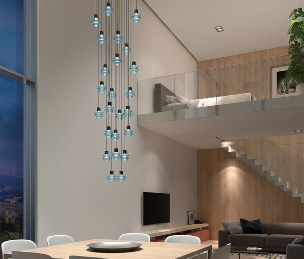 Το Drip παίρνει τις διαφοροποιήσεις του Drop στο επόμενο επίπεδο. Το Drip έχει τη δομή του Drop μα με δική του προσωπικότητα. Είναι ένα φωτιστικό σύστημα που όχι μόνο αναπτύσσεται σε διαφορετικά είδη φωτιστικών, αλλά και σε αμπαζούρ. Η νέα όψη του Drip δίνει την εντύπωση πως είναι ένα εντελώς διαφορετικό φωτιστικό από το Drop. Ενσωματώνει το πνεύμα του Drip, απλό, μινιμαλ με ευθείες γραμμές. Η επιλογή του γυαλιού συνδέεται στενά με το φως που συνοδεύει, που είναι φωτεινό μα ζεστό. Δημιουργεί ατμόσφαιρα ενώ είναι πολύ πρακτικό για όποιον βρίσκεται κοντά.