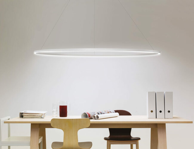 H συλλογή Ellisse είναι μια συλλογή LED φωτιστικών σε διάφορες εκδοχές: major, minor, double, trible και mega που προσδίδουν άμεση ή εμμεση διάχυση φωτός. Έχει έναν οπάλ ανακλαστήρα.
