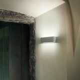 Φωτιστικό τοίχου, με διπλή απόδοση για να διαχέεται το φως προς τα πάνω και προς τα κάτω. Φτιαγμένο από αλουμίνιο, με οπάλ ακρυλικό κάτω ανακλαστήρα και διάφανο πάνω ανακλαστήρα. Το σώμα υπάρχει σε χρώμα ματ λευκό, μόκα, σαμπανιζέ ή ανθρακί.