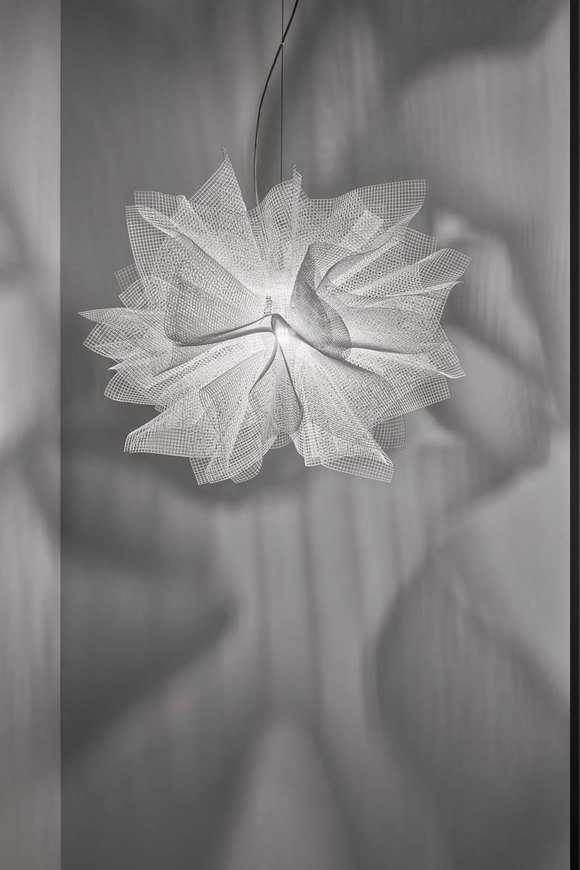To φωτιστικό Fluo σχεδιασμένο από τον Arturo Álvarez αποτελεί μέρος της συλλογής κρεμαστών φωτιστικών που δημιουργήθηκαν από πέπλα χρωματισμένου ατσαλιού που ενώνωνται σε ένα μοναδικό σημείο φωτός. Mια μορφή φωτός που αναπαράγει την ψευδαίσθηση ενός ατμιστού υφάσματος, σαν ένα ημι-διάφανο τούλι που αποκαλύπτει και κρύβει ταυτόχρονα, παίζοντας με το ένστικτο του παρατηρητή. Η φωτεινότητα αυτού του χειροποίητου προϊόντος, που κέρδισε το Good Design Award το 2009, ενισχύει τη μεγαλύτερη συλλογή.