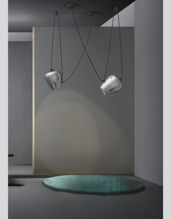 Σπονδυλωτή φωτεινότητα και κομψότητα. Το FOCUS φέρνει την ισορροπία ανάμεσα σε τρία φυσικά στοιχεία, ο γυάλινος ανακλαστήρας δημιουργεί ένα σύστημα που από ένα απλό κρεμαστό καταλήγει σε πολλαπλές συνθέσεις.