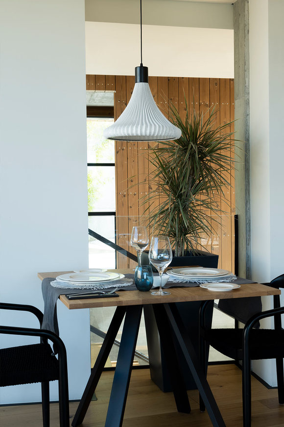 To Inn είναι το νέο κρεμαστό φωτιστικό που δημιουργήθηκε από τη σχεδιαστική μας ομάδα. Ένα κωνικό σχήμα όπου συναντιούνται το παρελθόν, το παρόν και το μέλλον. Το Inn είναι ένας νέος σχεδιασμός όπου το ανοξείδωτο ατσάλι είναι ο πρωταγωνιστής και οι γεωμετρικές μορφές επανερμηνεύονται με οργανικό άγγιγμα. Βυθιζόμαστε στα αισθήματα και στις ενωμένες γραμμές που χαράζουν πορεία που πάντα οδηγεί σε ένα κοινό μέρος: το φως.