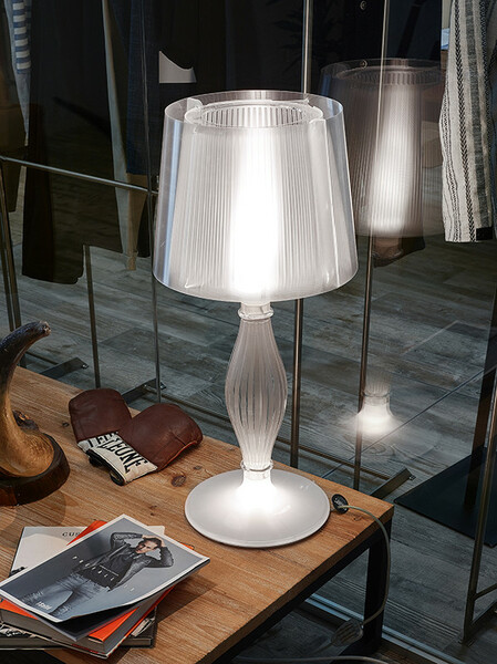 Το αριστούργημα της συλλογής Liza είναι το εμβληματικό επιτραπέζιο φωτιστικό εμπνευσμένο από το μπαρόκ, διαθέσιμο στην κλασική έκδοση Prisma, καθώς και σε μια νέα έκδοση Pewter, και τα δύο χρησιμοποιώντας τεχνοπολυμερή υλικά της Slamp. Η Liza διαθέτει σύστημα διπλού φωτισμού, με LED στη βάση και λάμπα στην κύρια πτυχωτή απόχρωση, δημιουργώντας αντιθέσεις φωτός και σκιών που δίνουν βάθος και ζεστασιά σε κάθε χώρο.
