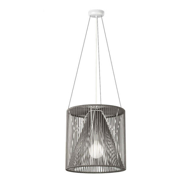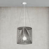 Η ορατή μεταλλική κατασκευή και η καλειδοσκοπική πλέξη από διακοσμητικό κορδόνι από ανακυκλωμένα πλαστικά μπουκάλια είναι τα χαρακτηριστικά αυτής της νέας πρότασης της οικογένειας κρεμαστών φωτιστικών μας. Με το κυλινδρικό του σχήμα, το MARIOLA διατίθεται σε διάφορα μεγέθη, καθώς και σε δύο πρωτότυπες επιλογές φωτιστικών δαπέδου.