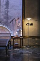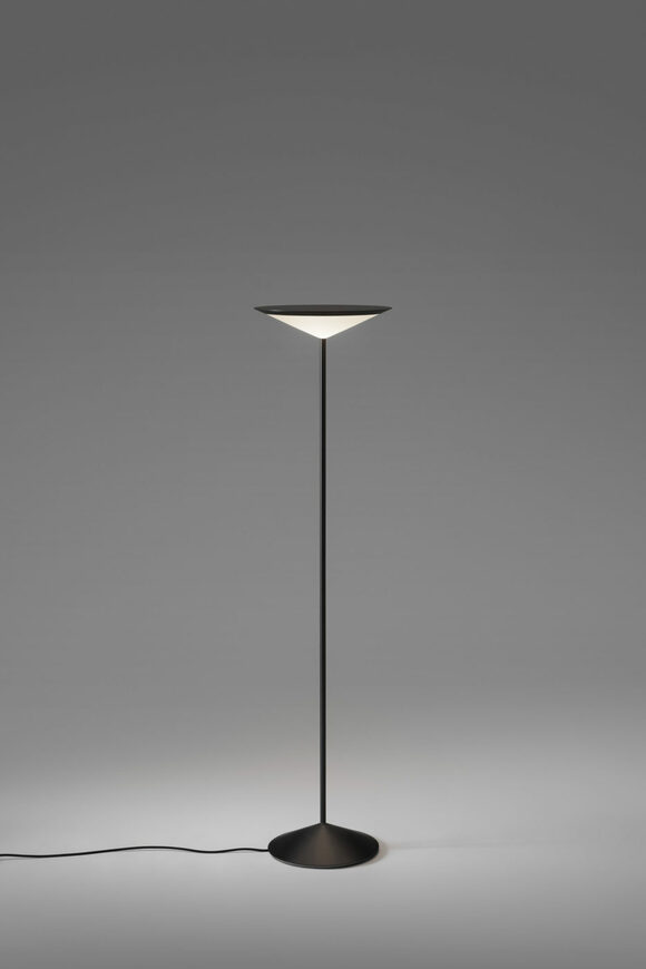 Όπως στον κλασικό μύθο ο Νάρκισσος κοιτάζει το είδωλό του στο νερό, αντίστοιχα ο κώνος αυτού του φωτιστικού χωρίζει για να μοιράσει και να αντανακλάσει το κομψό φως του. Η επιτραπέζια εκδοχή αποτελεί αναφορά στη μουσική, αφού μπορεί να έχει bluetooth ηχεία.
