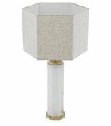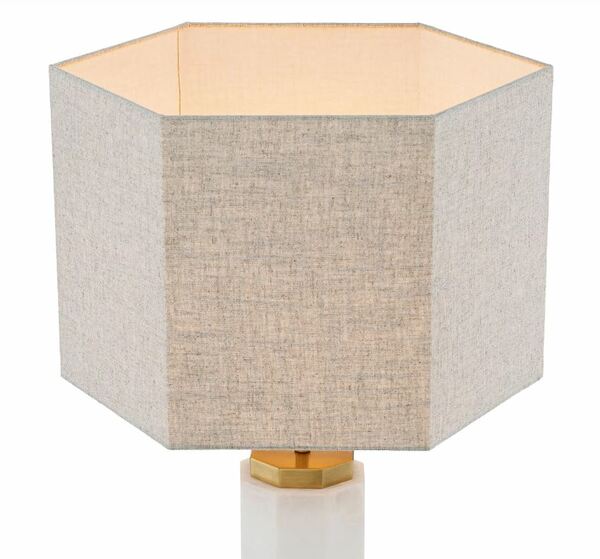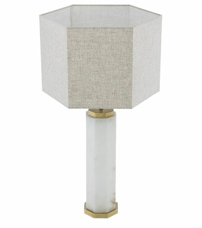 Προσθέστε μια δραματική πινελιά στο εσωτερικό σας με το επιτραπέζιο φωτιστικό Newman, το οποίο προσφέρει ατμοσφαιρικό φωτισμό στα καλύτερά του. Το σώμα του αποτελείται από μια οκταγωνική δομή από αλάβαστρο, με ορειχάλκινη βάση και υποδοχή. Ολοκληρωμένο στην τελειότητα από ένα οκταγωνικό λινό αμπαζούρ.
