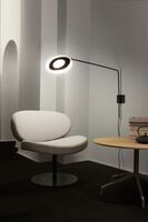 Προσαρμοσμένο φωτιστικό τοίχου με ανακλαστήρα από πολυανθρακική αμμοβολή σε ματ λευκό, για ευρύ θερμό φωτισμό. To σώμα του φωτιστικού είναι από μαύρο αλουμίνιο. Ο βραχίωνας τοίχου είναι από ABS.