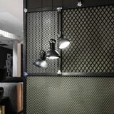 To Projecteur του Le Corbusier σχεδιάστηκε για το δικαστήριο Chandigarh στην Ινδία, το 1954. Το σώμα από αλουμίνιο είναι βαμμένο σε νυχτερινό μπλε, λευκή άμμο ή μόκα. Οι ανακλαστήρες είναι από σκαλισμένο γυαλί και αμμοβολή στο εσωτερικό μέρος. O σφιγκτήρας και οι θόλοι είναι σε μαύρο ματ. Συστήνεται και για εξωτερική χρήση. Οι πρίζες Ε27 επιτρέπουν τη χρήση λάμπας φθορίου ή LED λάμπας.
