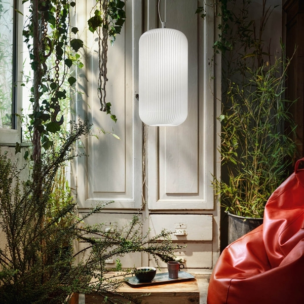 Φωτιστικό με δομή αλουμινίου και ανακλαστήρα από φυσητό γυαλί. Διατίθεται σε ματ λευκό ή ματ μαύρο χρώμα, κι έχει δύο πηγές φωτός: είτε LED είτε Ε27. Οι γυάλινοι ανακλαστήρες διατίθενται σε λευκό, διάφανο κεχριμπάρι, διάφανο κρύσταλλο, διάφανο μπλε ή διάφανο πράσινο. Έχει άμεσο φωτισμό.