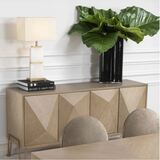 Συνδυάστε το μοντέρνο στυλ και την γοητεία του Mid-Century μοντερνισμού με το επιτραπέζιο φωτιστικό Robbins. Καθορισμένο από μια γλυπτική βάση φωτιστικού με φινίρισμα από ματ ορείχαλκο και λευκό αλάβαστρο, αυτό το εντυπωσιακό επιτραπέζιο φωτιστικό με λευκό αμπαζούρ δημιουργεί μια κομψή και εκλεπτυσμένη αισθητική στο εσωτερικό σας.