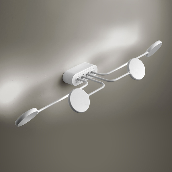 A collection with a refined and essential design. Small metal arms hold turning round light sources in which are housed 220V LED boards, no driver is needed.
