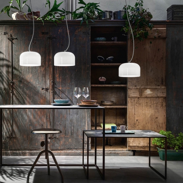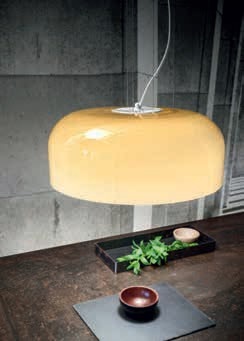 Lamp with die-cast aluminium structure and blown glass diffuser.