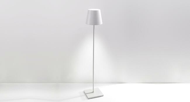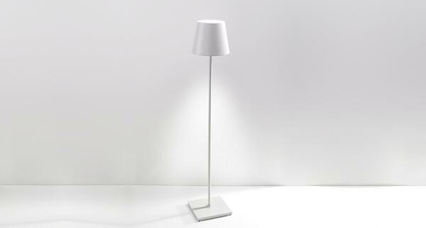 Poldina XXL is a battery-operated portable and rechargeable floor and table lamp. It is equipped with contact charging base, dimmer touch control, light colour temperature selection function, 2700K or
