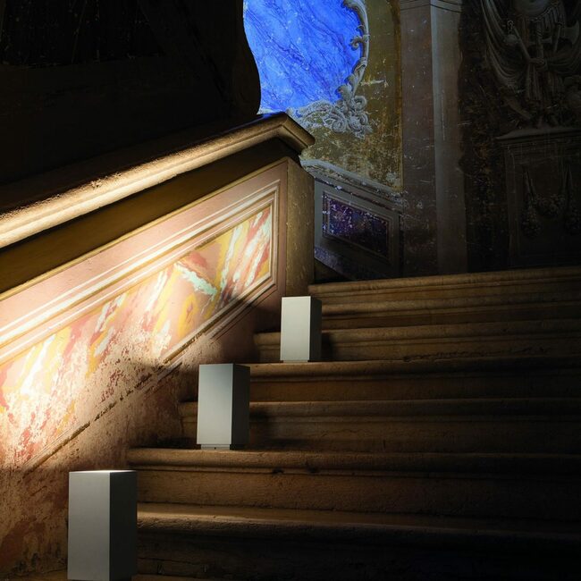 LED floor/table lamp for a diffused indirect light. Powder-coated
