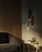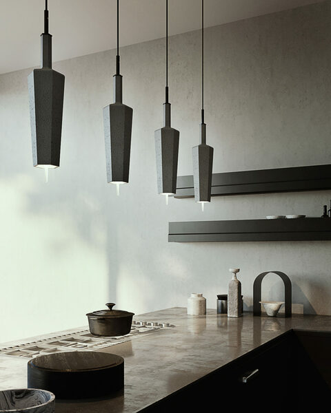 SOP is a suspension lamp. The shape, which recalls the elegance of the vases and vials of the Greek and Roman period, is hexagonal. SOP is a unique and tapered block of cement, that is completed at the base by an LED which is reminiscent of the shape and elegance of a flower’s pistil. The use of cement, an extremely contemporary material, allows SOP to combine perfectly with the environment and the context in which it is inserted. The lamp is a very discrete element in its monochromatic form, when coloured it gives a strong contrast.