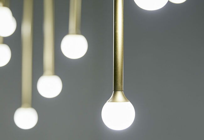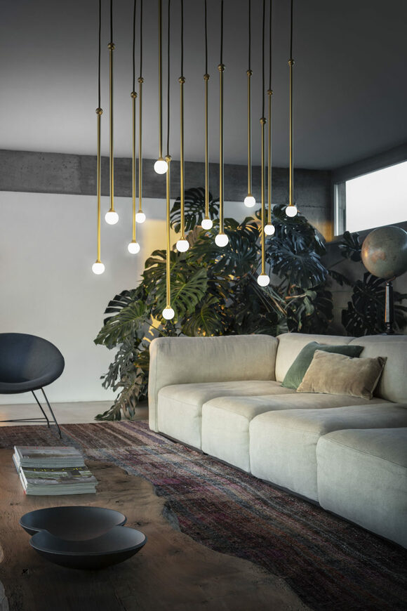 Thin stems in precious metallic finishes create evocative harmonies of light.