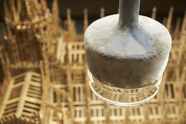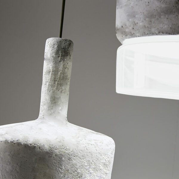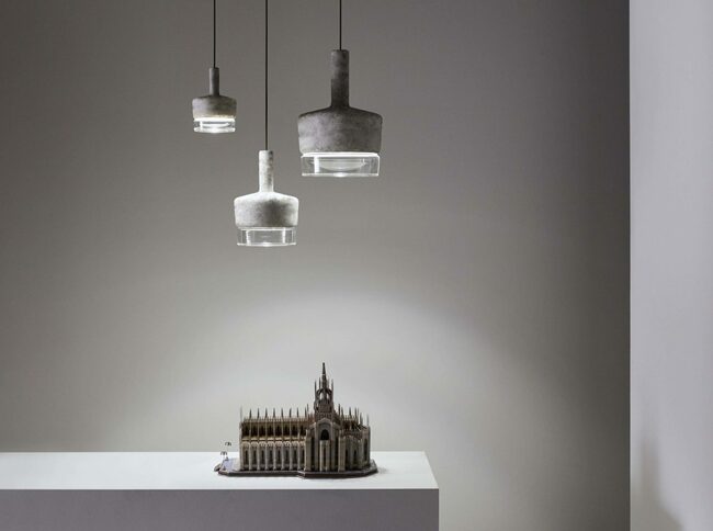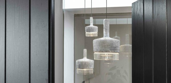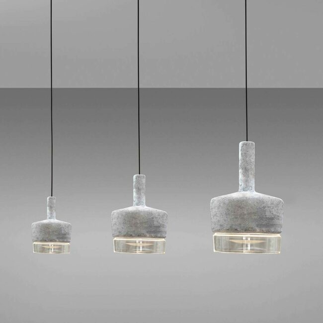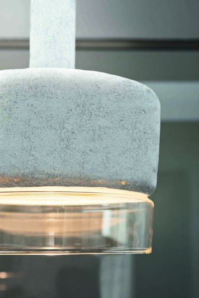 H υλικότητα του σκυροδέματος ενώνεται με τη φωτεινότητα του γυαλιού στο κρεμαστό φωτιστικό Αcorn, που γεννήθηκε για να φωτίζει χώρους. To χειροποίητο σκυρόδεμα εκπέμπει ένα θερμό, περιβάλλων φωτισμό.