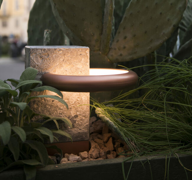 Ένα φωτεινό στοιχείο με ουσιαστικές γραμμές και μια μονοκόμματη πέτρα. Το Angolo είναι ένα φωτιστικό γλυπτό που συνδυάζεται με καθαρότητα μορφής και υλικό πλούτο, για να δημιουργήσει μία κομψή ατμόσφαιρα.